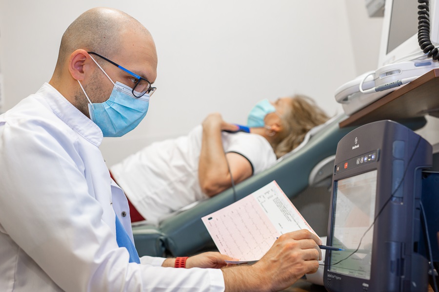 Прегледът в доболничния кабинет на отделението по Електрофизиология и кардиостимулация включва пълна анамнеза и физикален преглед. Изключително важно е представянето на всички налични медицински документи. От особено значение са предходните ЕКГ записи (ако има такива) и най-вече тези, на които е регистрирана аритмията или проводното нарушение. По преценка на лекаря от екипа, който консултира пациента, прегледът може да включва и ехокардиография. Също така може да се наложи да бъде запланувано извършването на Холтер ЕКГ – това е амбулаторно инструментално изследване, при което се регистрира 24-часов ЕКГ запис. След завършване на 24-часовия период, ЕКГ записът бива анализиран подробно от лекар, който дава заключение за резултата от изследването.