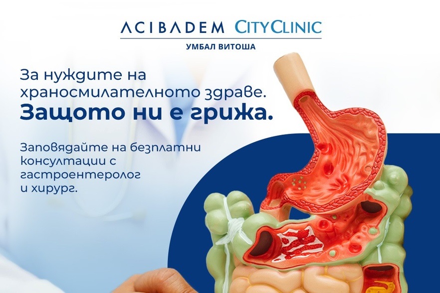 Acibadem City Clinic УМБАЛ Витоша обявява "Дни на храносмилателното здраве" и безплатни консултации с водещи специалисти по гастроентерология и коремна хирургия