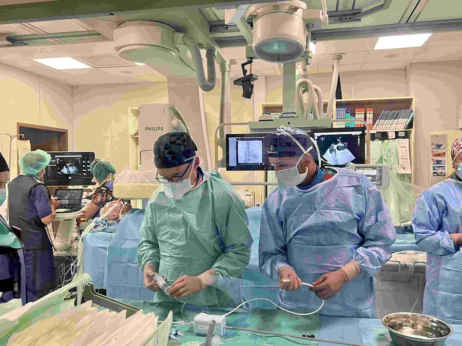 Екипът, който се събира за интервенцията, е мултидисциплинарен. Присъства и международен инструктор, които напътства лекарите за безупречното протичане на имплантацията. Същевременно в залата се събират и други колеги кардиолози, които искат да наблюдават наживо наподобяващата на магия процедура, извършвана от проф. Петров, доц. Зоран Станков, д-р Емил Димитров, д-р Мария Янева, д-р Ясен Гецов.
