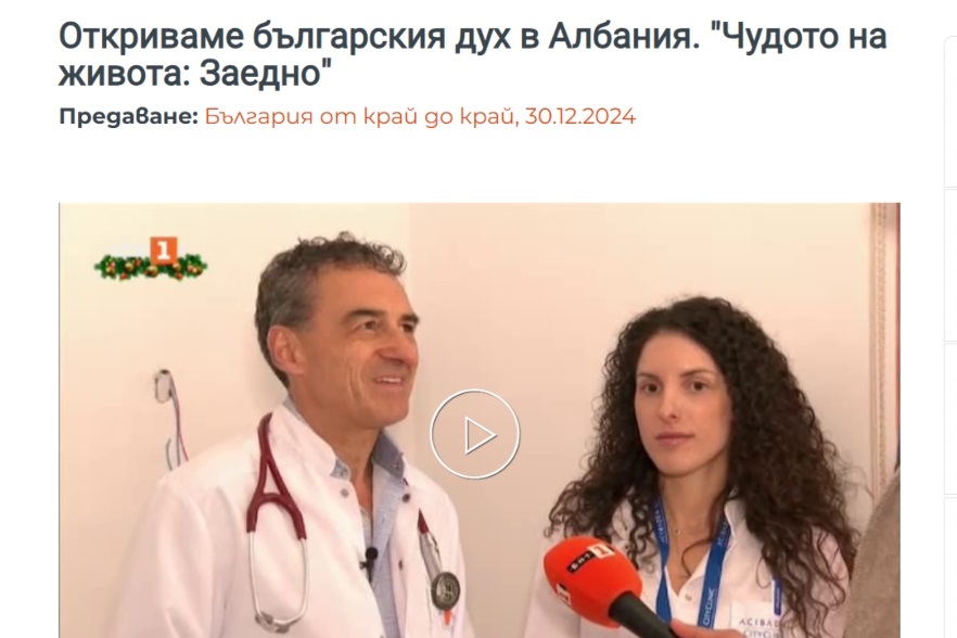 В предаването „България от край до край“ по БНТ проф. д-р Иво Петров, медицински директор на Аджибадем Сити Клиник УМБАЛ Сърдечно-съдов център, споделя за благородната мисия на екипа си в Мала Преспа, Албания. Българските лекари проведоха безвъзмездни медицински прегледи в региона, обединявайки професионализъм, човечност и отдаденост в името на здравето на местните жители.