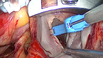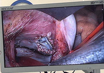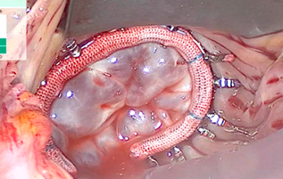 Фиг. 4 Интраоперативен изглед от ендоскопска хирургия на митрална и трикуспидална клапи.
