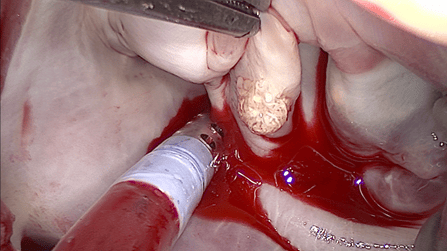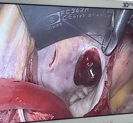 Доброкачествените тумори на сърцето включват миксоми и папиларни фиброеластоми. Специфичната им локализация предимно в ляво предсърдие ги прави подходящи за ендоскопски хирургичен достъп. С развитието на тази техника в Аджибадем Сити Клиник Сърдечно-съдов Център вече 15 пациента с този тип патология бяха оперирани с минимален разрез. (Фиг. 6)