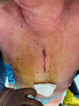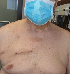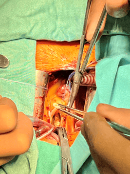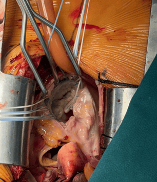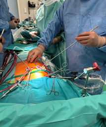 Дясна миниторакотомия при протезиране на аортната клапа дава възможност за съхранение на цялостта на гръдната кост и подпомага по-бързото възстановяване на пациентите, намалява постоперативната кръвозагуба и осигурява оптимален козметичен резултат. Познатите техники използвани в отделението са както дясна миниторакотомия във второ дясно междуребрие, така и трансаксиларна торакотомия за осигуряване на достъп до аортната клапа в зависимост от индивидуалната анатомия на пациентите, използването на ендоскоп дава възможност за намаляване на оперативния разрез и осигуряване на по-добра видимост. (фиг. 3)