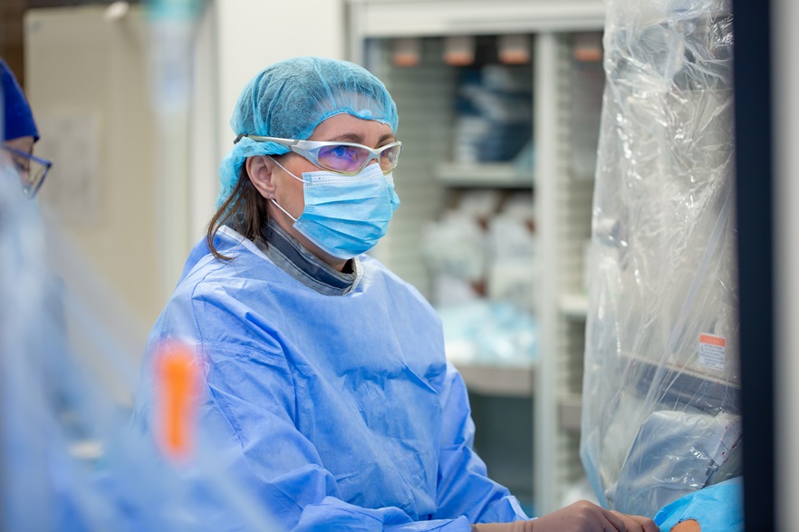 Интервенцията се осъществява с локална упойка чрез достъп през повърхностна артерия на горен крайник, в конкретния случай дясна радиална артерия. Процедурата беше изпълнена успешно и продължи по-малко от час без усложнения. Пациентът е изписан на следващия ден.