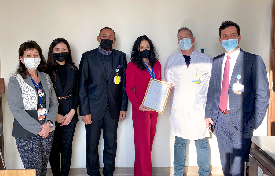 Медицинският директор на болницата проф. д-р Асен Дудов и г-н Мелих Карахасаноглу, прокурист, връчиха лично грамотите на наградените