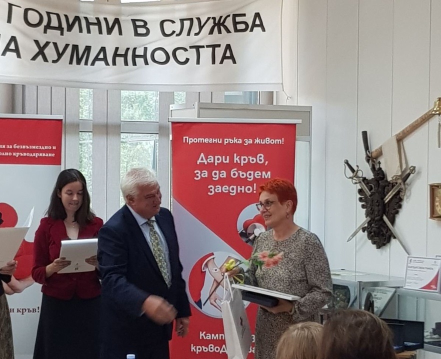 Д-р Е. Алова получи и благодарствена грамота за активен кръводарител от Българския червен кръст и Националния център по трансфузионна хематология.