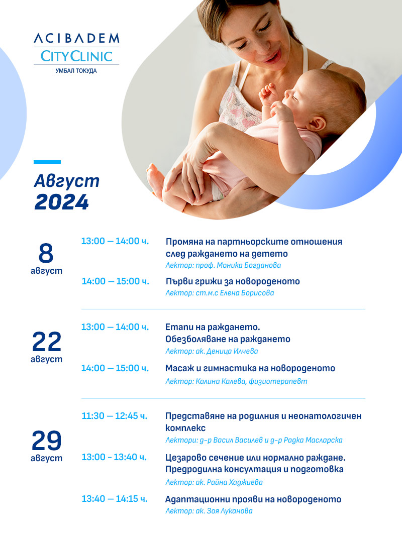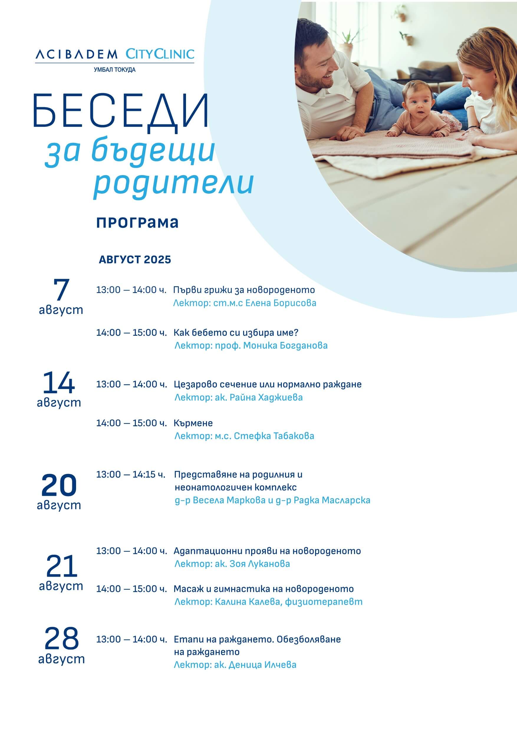 Програма за обучение на бъдещи родители през месец АВГУСТ 2023 г.