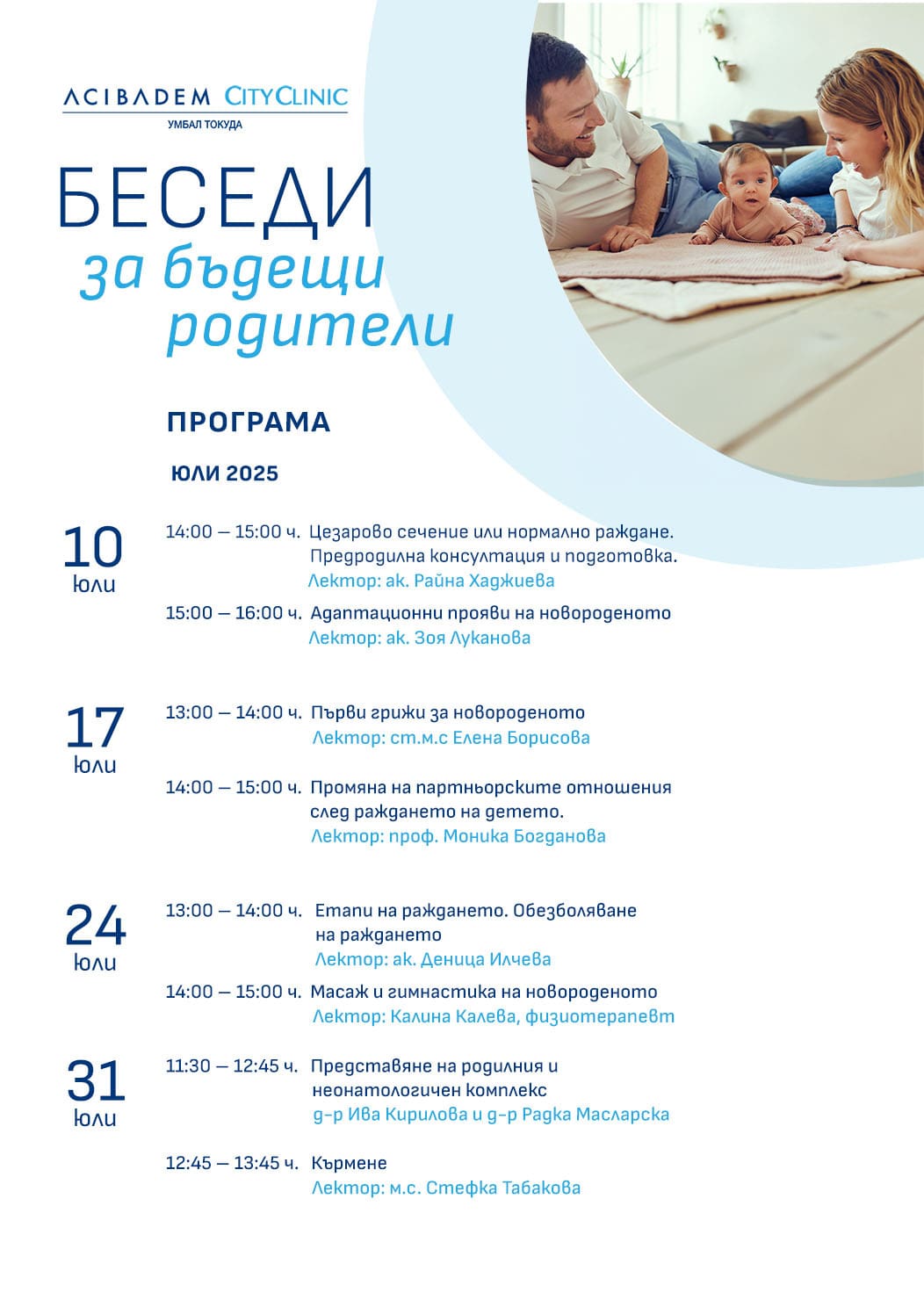 Програма за обучение на бъдещи родители през месец ЮЛИ 2023 г.