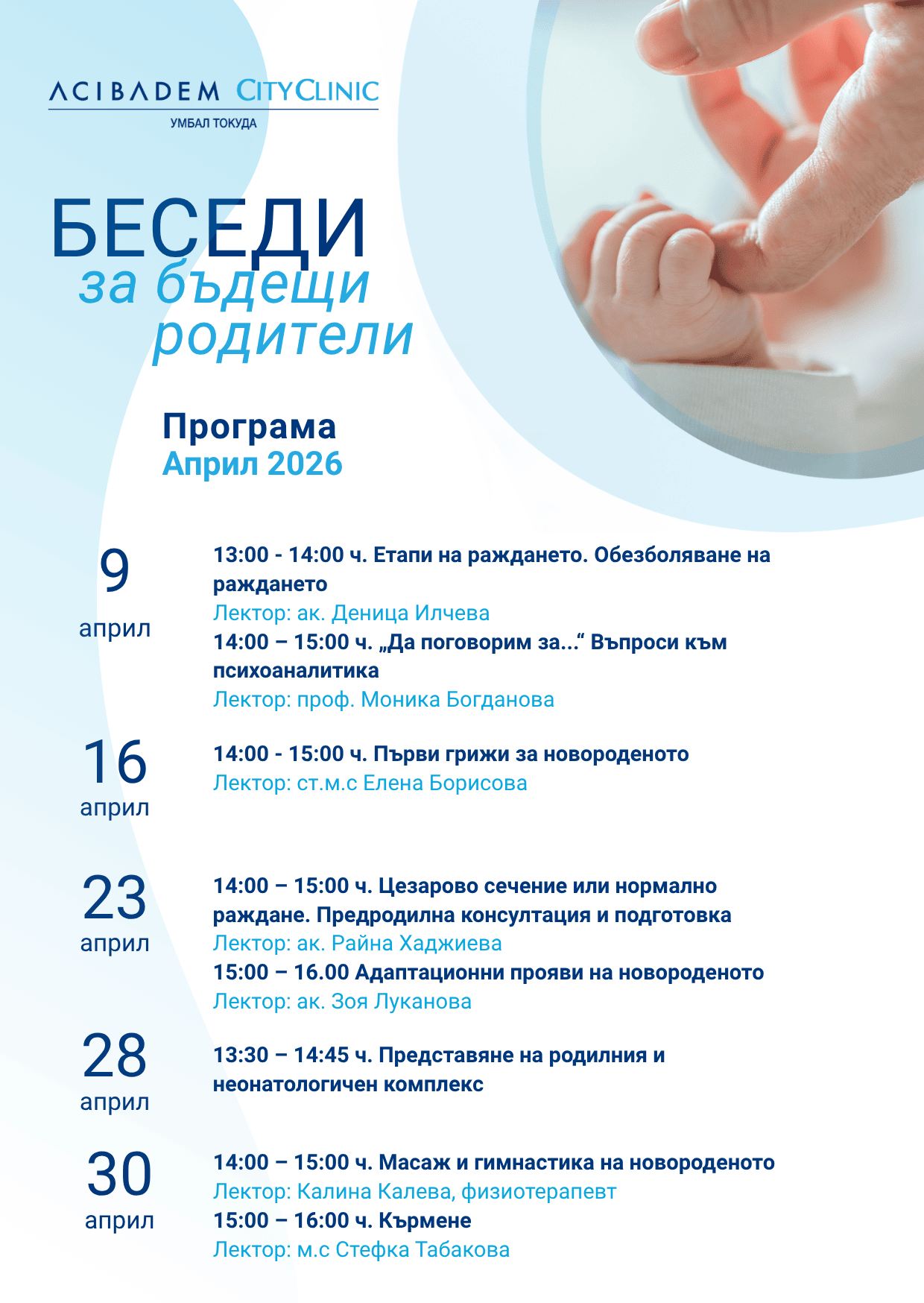 *Всички беседи се провеждат в Аулата на етаж 9 на Аджибадем Сити Клиник УМБАЛ Токуда. Не е необходимо предварително записване.