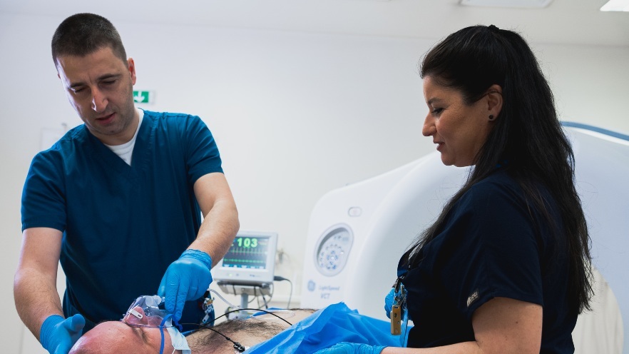 - Клиниката разполага с единствения в страната двойно-енергиен компютъртомографски апарат от последно поколение, позволяващ скениране с високо качество на образа, при по-ниска радиационна доза и елиминиране на артефактите от метални импланти