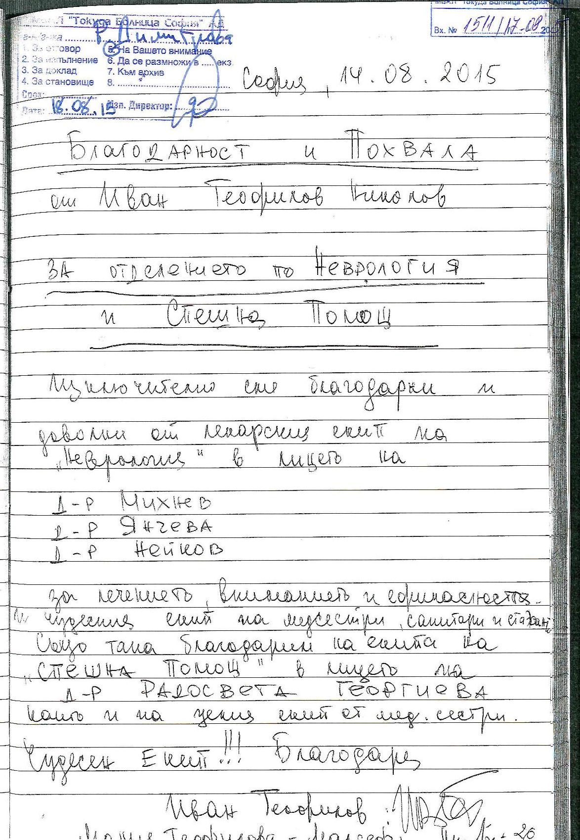 4. "Изключително сме благодарни и доволни от лекарския екип на "Неврология" и екипа на "Спешна помощ"