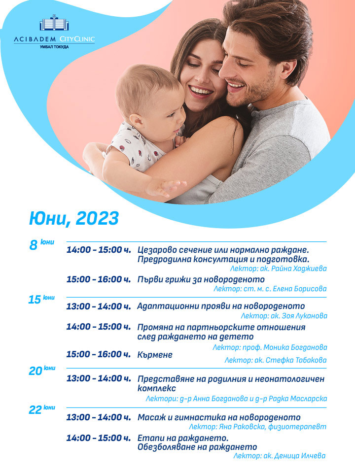 Заповядайте на Беседите за бъдещи родители на Аджибадем Сити Клиник УМБАЛ Токуда през месец юни, за да се подготвите за раждането и грижите за бебето заедно с нашите опитни медицински специалисти.