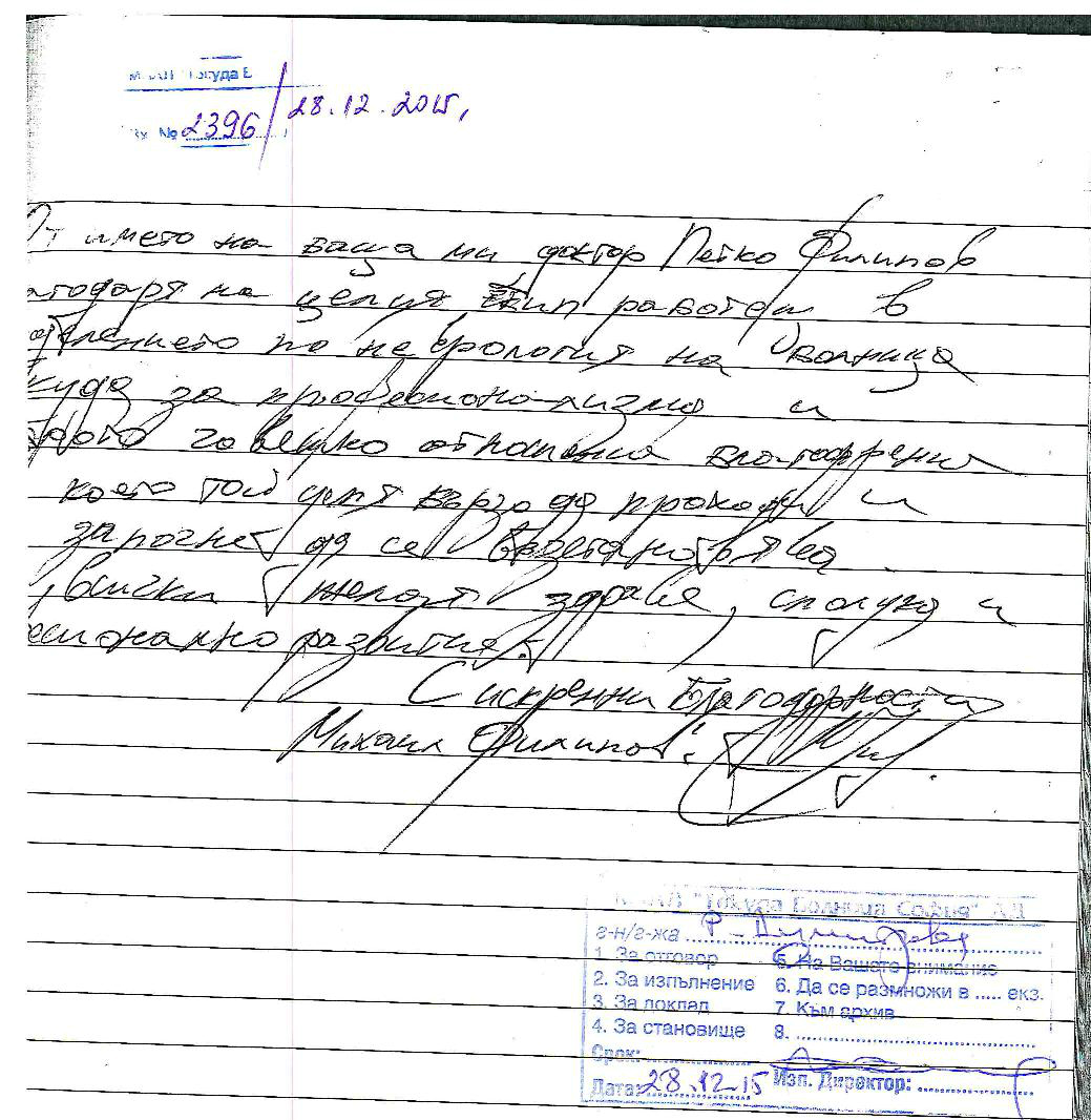 4. Благодарност към целия екип на Клиника по Неврология за професионализма и доброто човешко отношение