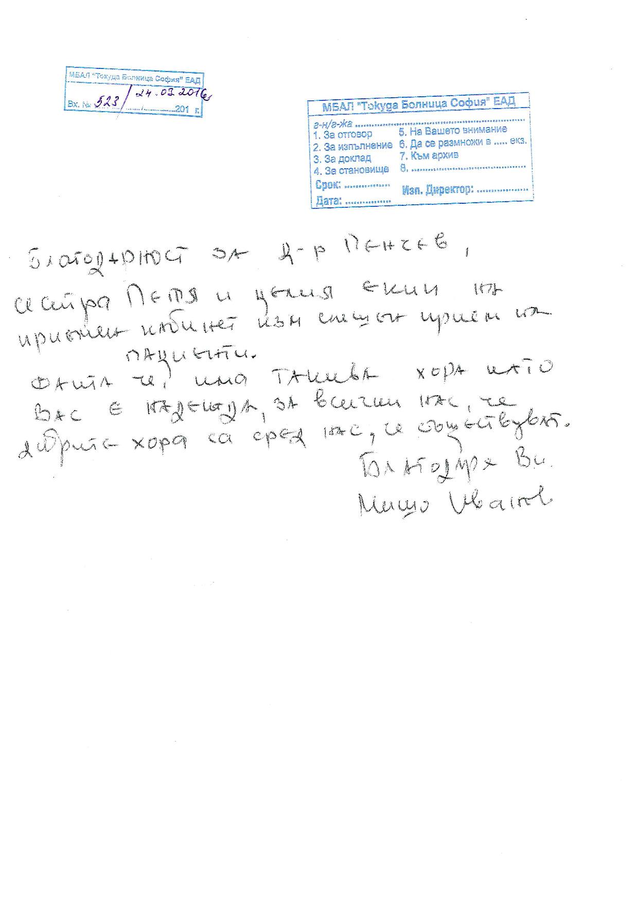 4. Благодарност за д-р Пенчев (Неотложно звено): "Фактът, че има такива хора като Вас е надежда, че добрите хора са сред нас"