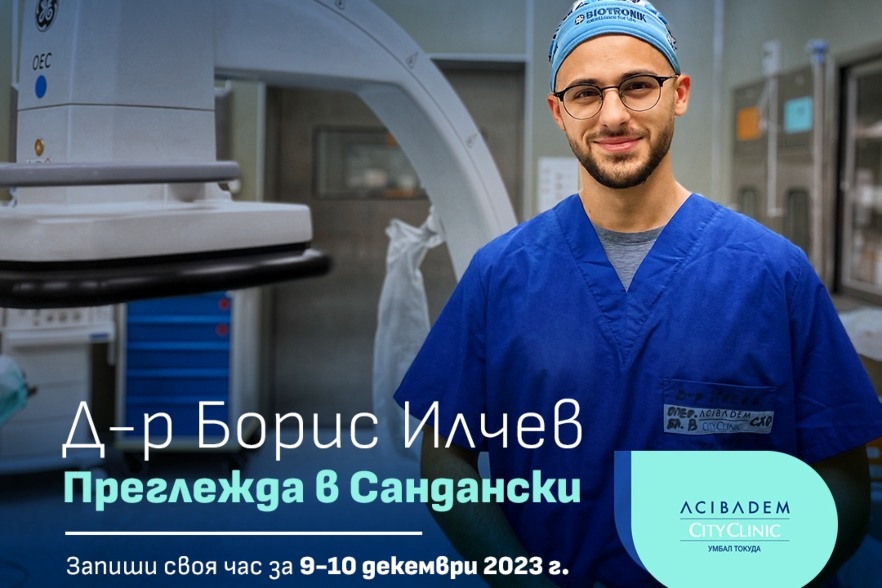 Д-р Борис Илчев от Клиника по съдова хирургия в Аджибадем Сити Клиник УМБАЛ Токуда, ще преглежда в гр. Сандански на 9-10 декември 2023 г.