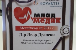 Д-р Явор Дренски спечели наградата Мениджър на 2015 г. за активна подкрепа за развитие на младите лекари в България