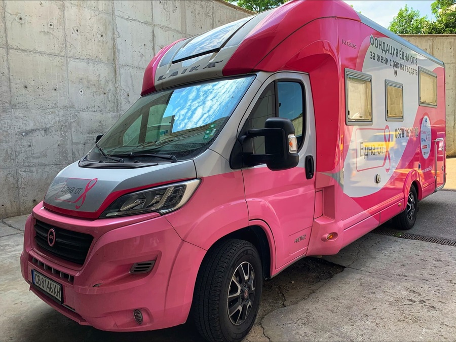 Шал от фина памучна материя, мостри на специализирана козметика и информационни материали за жени с рак на гърдата, провеждащи лъчелечение подари Фондация „Една от 8“ на пациенти в отделението по Лъчетерапия на Болница Токуда в инициатива, наречена “Розова прегръдка”.