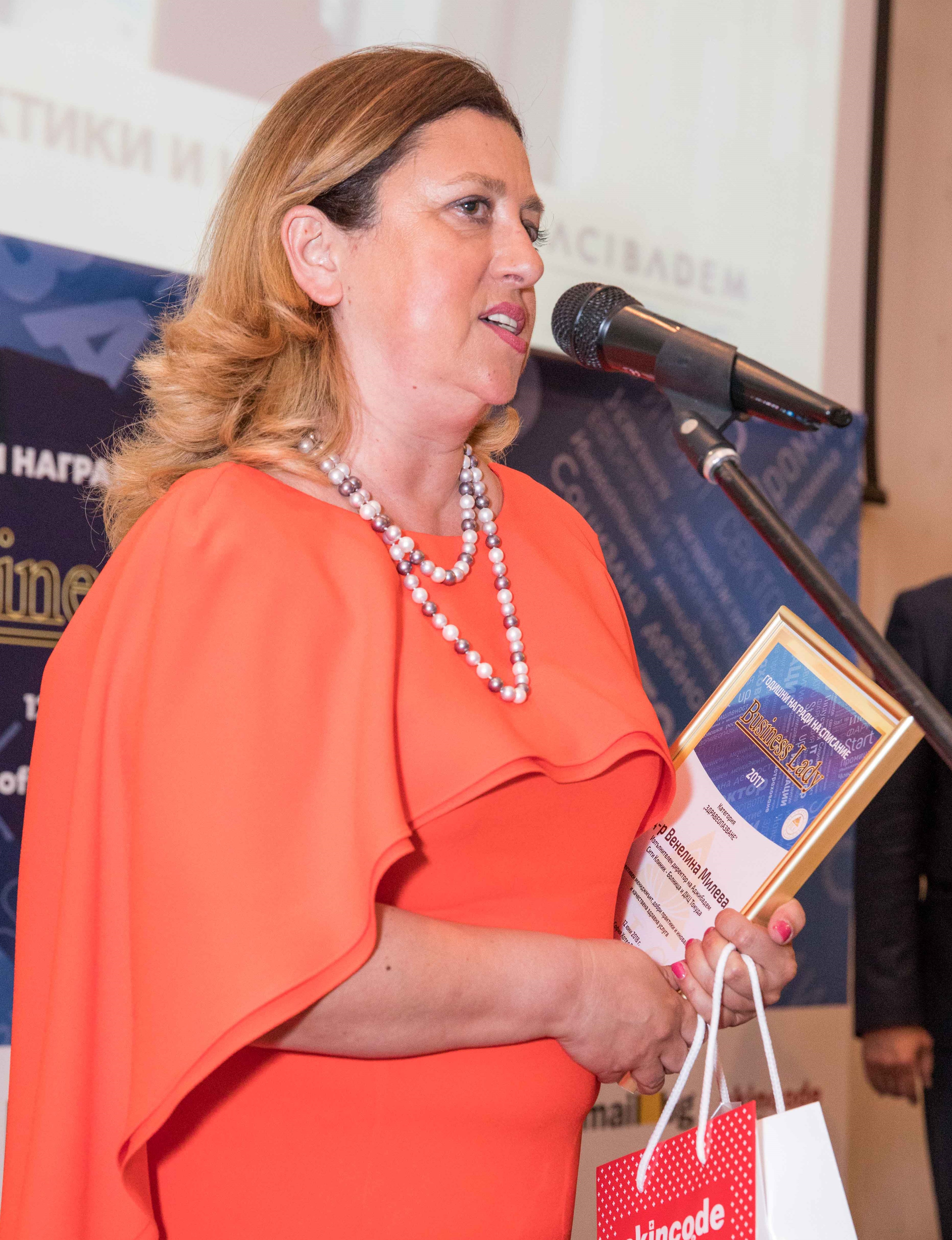Д-р Венелина Милева, изпълнителен директор на Аджибадем Сити Клиник - Болница и ДКЦ Токуда получи награда за Ефективен мениджмънт, добри практики, иновации, и качествена здравна услуга в тазгодишното издание на наградите на сп. Business Lady.