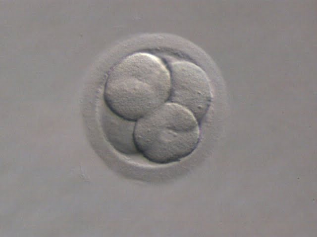 Ембрионите до 3-ти ден са в етап на ранно делене – генетичният материал се размножава, клетките на ембриона се разделят, но обема на ембриона не се различава от обема на неоплодената яйцеклетка. Чисто концептуално човешкия ембрион се дели в много специфична последователност: от една клетка става на две, двете стават на четири, четирите стават на осем и така нататък. Но в действителност ембрионалните клетки, наречени бластомери в този етап, не се делят синхронно, затова често ембриологът може да види 3, 5 или 7 клетки. Важно е в стадий на 4 клетки (ден 2) или в стадий 8 клетки бластомерите да са симетрични: