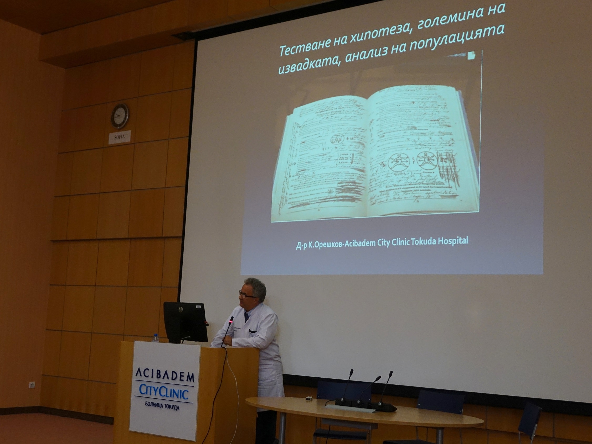 “Тестване на хипотеза, големина на извадката, анализ на популацията” бе темата на д-р Красимир Орешков от Отделението по Медицинска онкология.