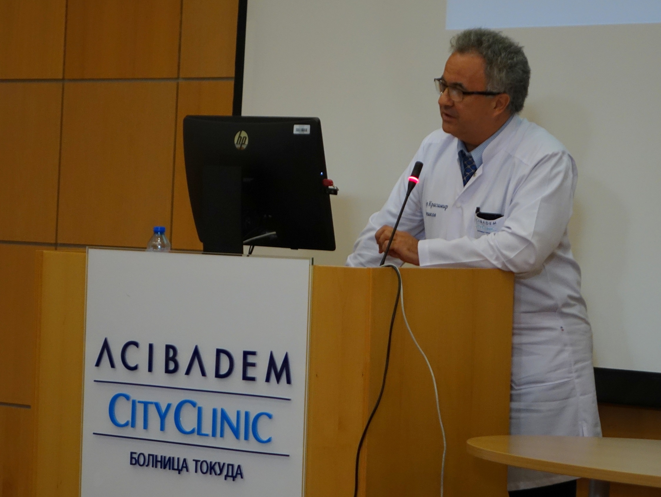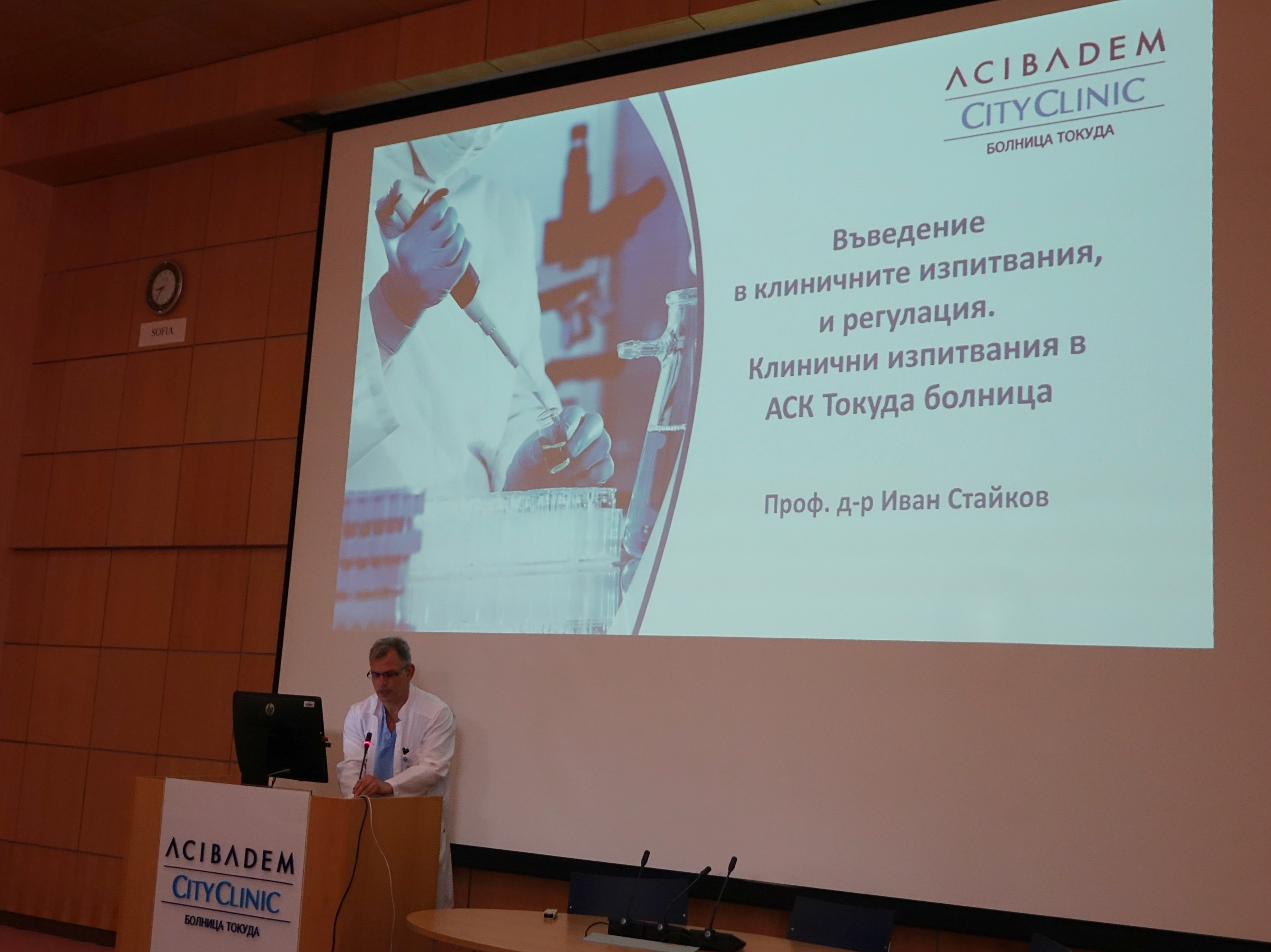 Началникът на Клиниката по Неврология в болницата проф. д-р Иван Стайков откри форума с темата “Въведение в клиничните изпитвания, регулация, провеждане на клинични изпитвания в Аджибадем Сити Клиник МБАЛ Токуда”.