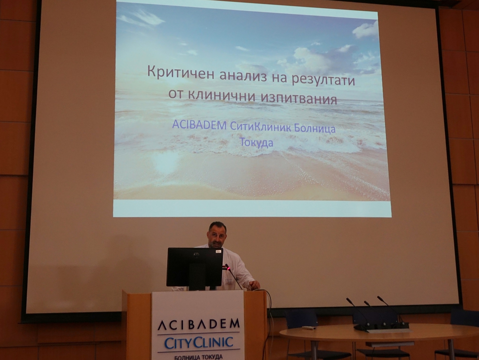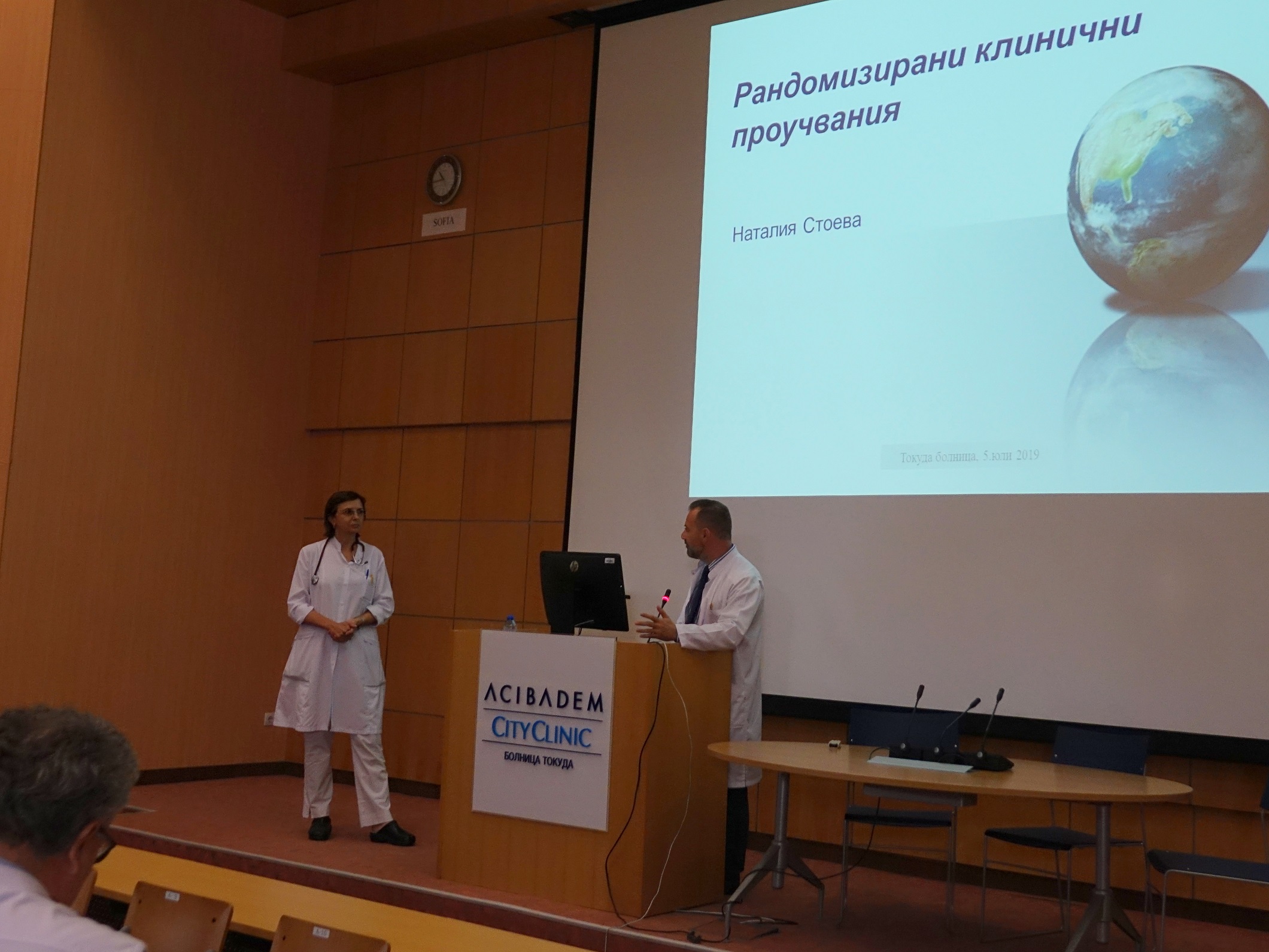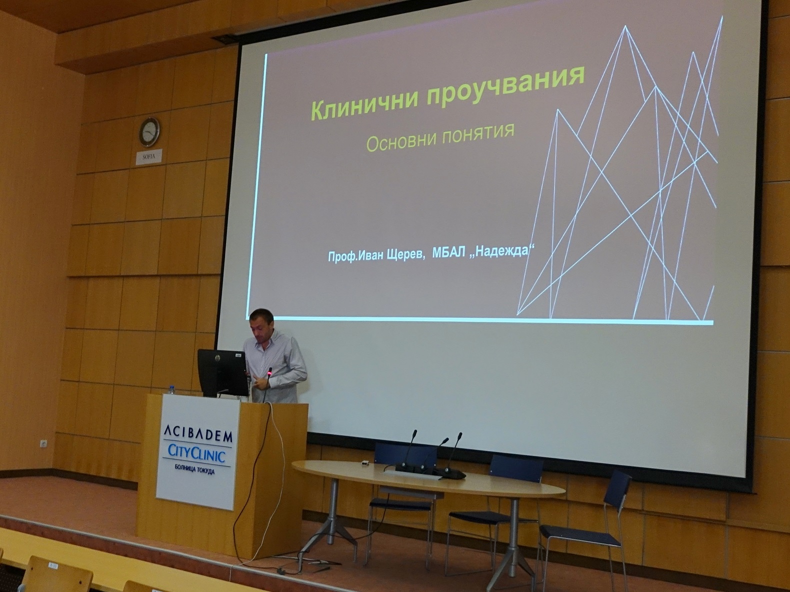Проф. д-р И. Донев, гост-лектор от МБАЛ Надежда, запозна аудиторията с основни понятия и интерпретация на клиничните проучвания.