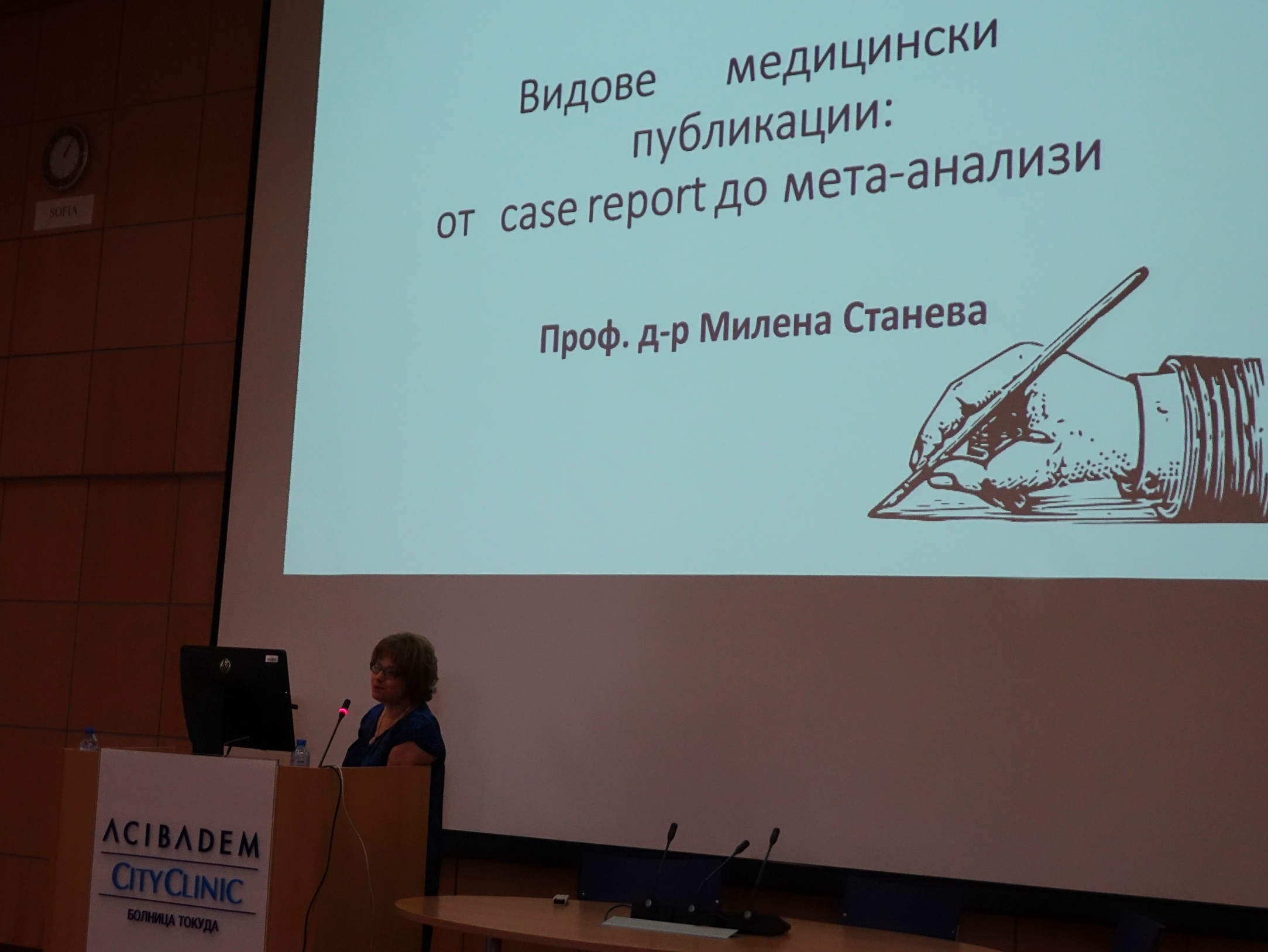 Началникът на Клиниката по Ангиология в болницата проф. д-р Милена Станева представи доклад за видовете медицински публикации: от case report до мета-анализи.