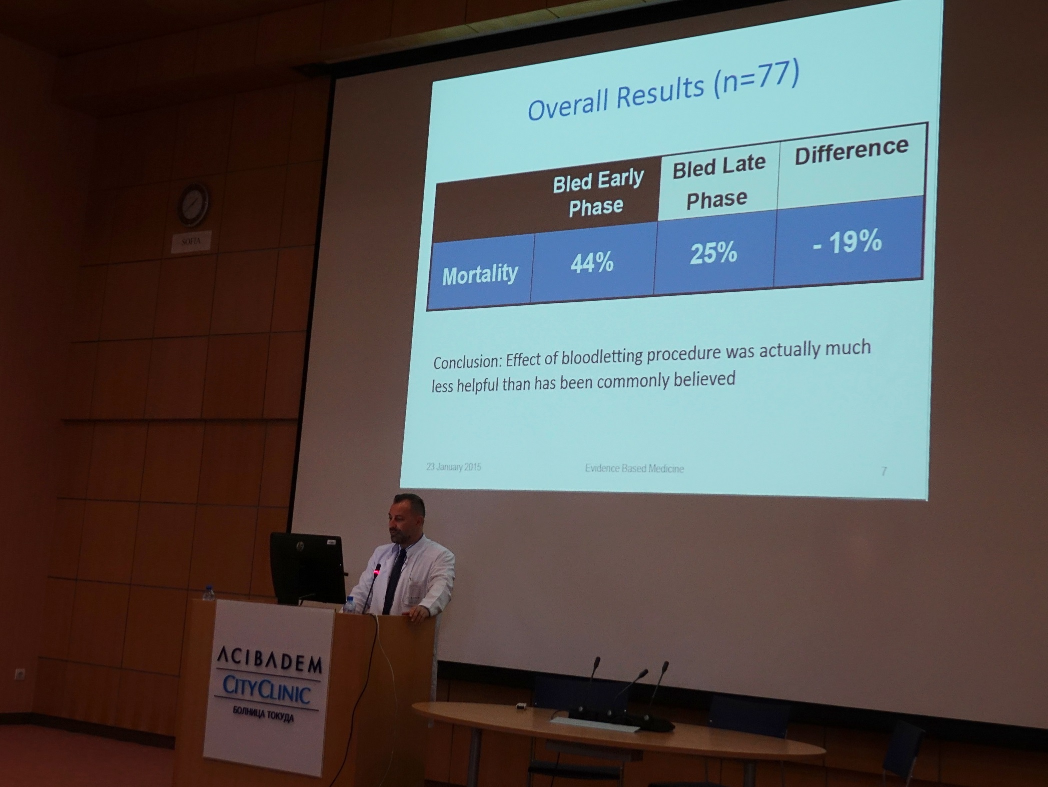 Организаторът на обучението д-р Желязко Арабаджиев, началник на отделението по Медицинска онкология бе модератор и запозна аудиторията с медицина, базирана на доказателствата и критична оценка на резултати от клинични изпитвания.