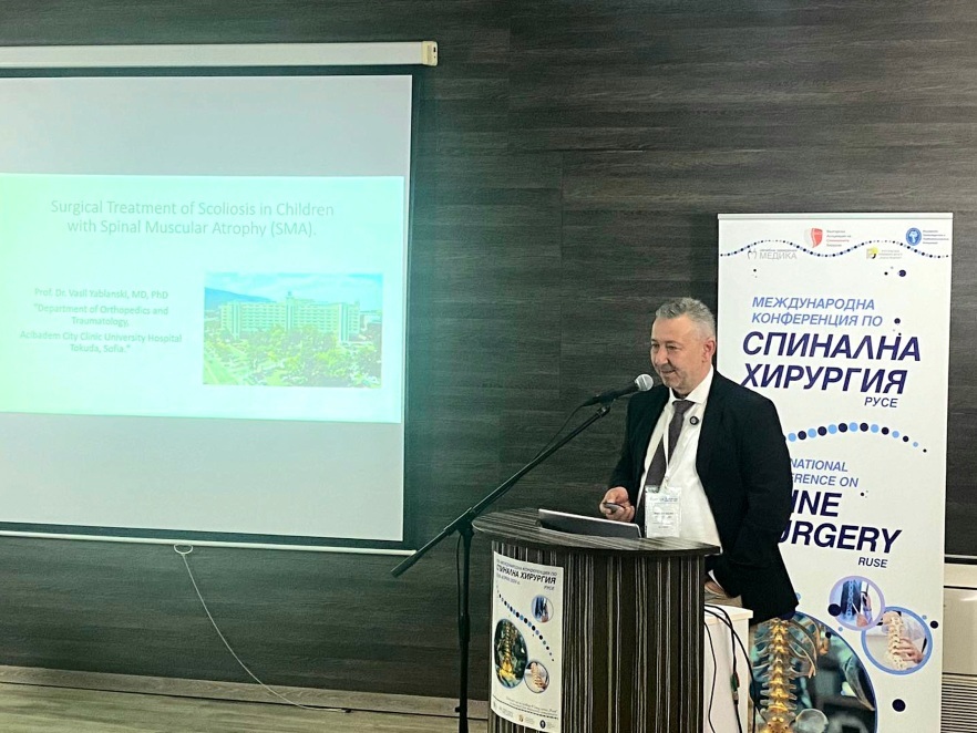 С 9 научни доклада, по време на 5-тата международна конференция по спинална хирургия в гр. Русе, продължи съвместната работа на Клиника по ортопедия и травматология и представителите на SRS. На събитието, организирано от Българска асоциация на спиналните хирурзи, проф. д-р В. Яблански сподели експертизата си в „Хирургично лечение на сколиоза при деца със спинална мускулна атрофия (СМА)", д-р Б. Каменова докладва „Ефективност на интраоперативен равнинен еректор спине блок за следоперативно обезболяване при сколиотична хирургия в детска възраст“, а д-р Е. Влаев представи темата „Двуетапно хирургично лечение на деца с тежки форми на сколиоза“.