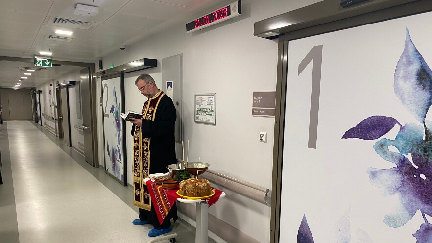 Отец Радко прочете молитва за здраве на бебетата и медицинските специалисти, и поръси със светена вода. „Бог да ви благослови, да ви даде здраве и благодатни сили в работата. Да се раждат много бебета“, пожела той.