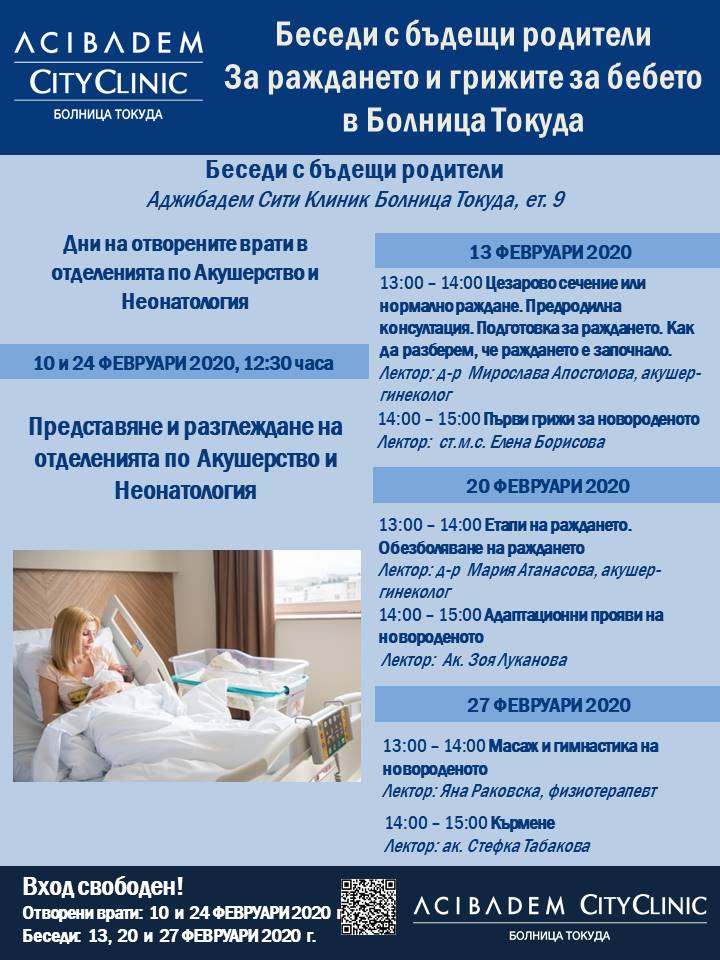 Програма за беседите с бъдещи родители в Аджибадем Сити Клиник Болница Токуда през месец февруари