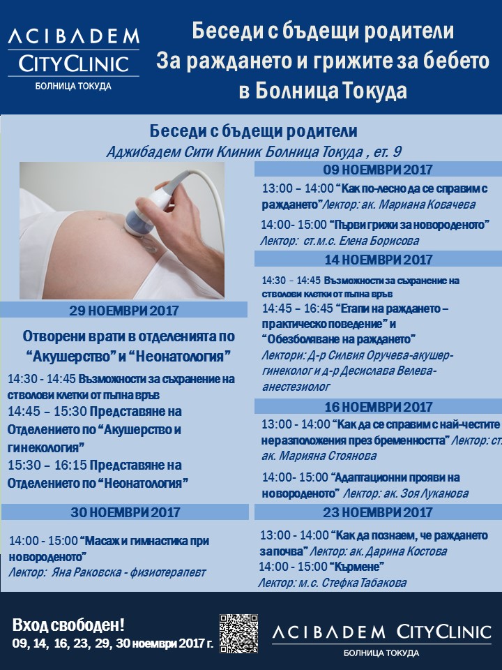 Програма за беседите с бъдещи родители в Аджибадем Сити Клиник Болница Токуда за ноември 2017 г.
