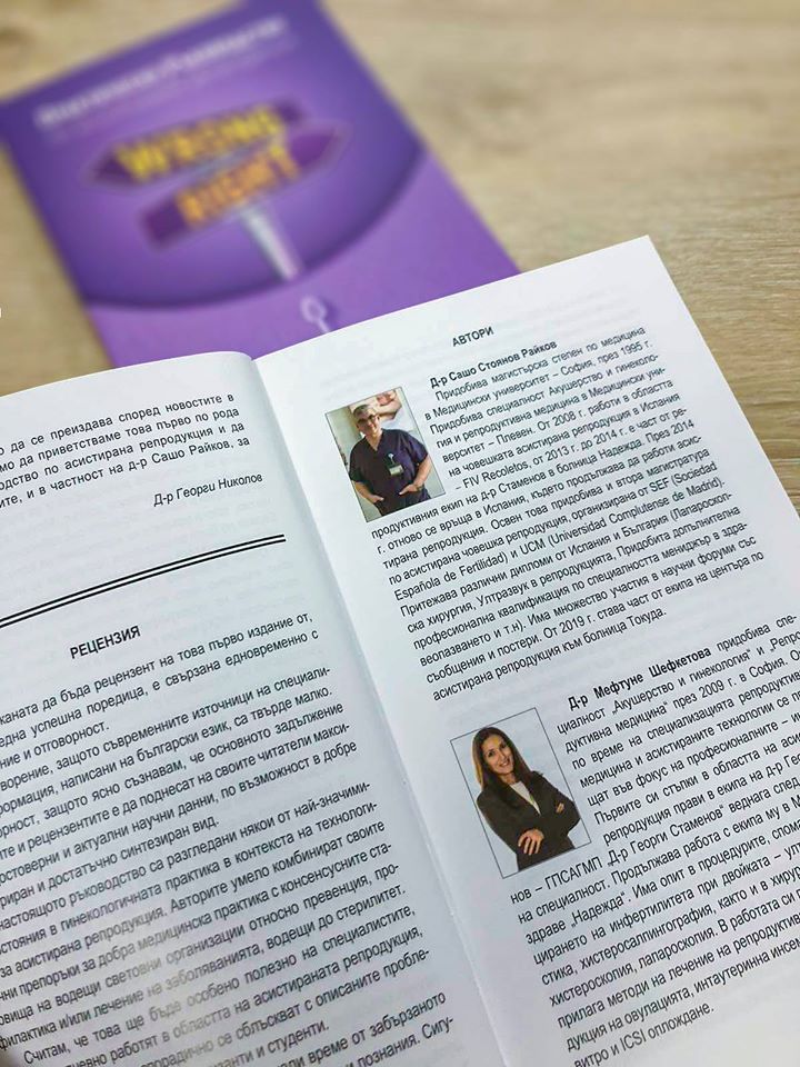 Изданието е плод на авторски екип на доказали се професионалисти с дългогодишна практика в медицината - д-р Сашо Райков и д-р Мефтуне Шефкетова, специалисти от Центъра за асистирана репродукция на Болница Токуда, проф. Радка Аргирова, дм, вирусолог от Клинична Лаборатория на болницата, Тодор Чаушев, биолог и Димитринка Цанева, ембриолог. Автор на рецензията д-р Петър Игнатов, д.м., акушер-гинеколог.