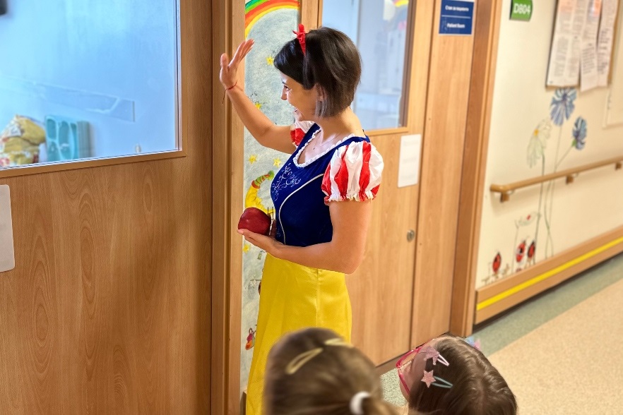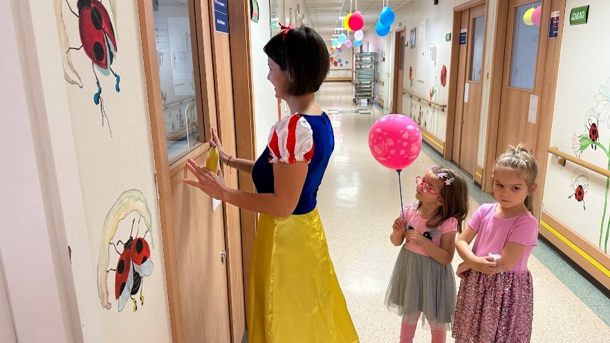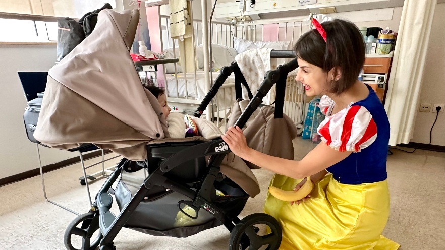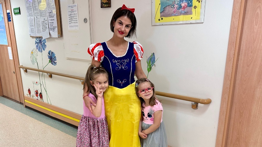Майката на малката Мария, която се лекува от пневмония в Клиниката по педиатрия, се преобрази в Снежанка. Ивелина Мадолева усмихна нашите малки пациенти и им раздаде свежи плодове, за да растат здрави и силни.