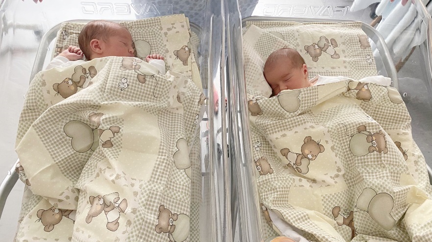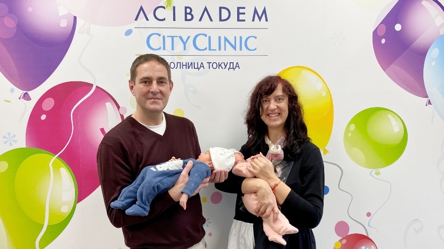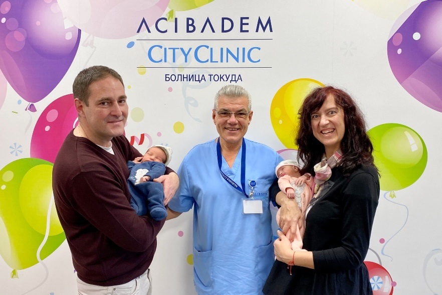 Д-р Мария Атанасова от Клинката по акушерство и гинекология проследява бременността ѝ и изражда близнаците с планово секцио на 13 декември. В 10:42 ч. първо се ражда Борис с тегло от 3090 гр. и ръст 50 см. Минута по-къснo на бял свят се появява и София с тегло от 2700 гр. и ръст 49 см. Грижите за новородените са поети от неонатолозите д-р Вяра Константинова и д-р Ирина Александрова от Отделението по неонатология.