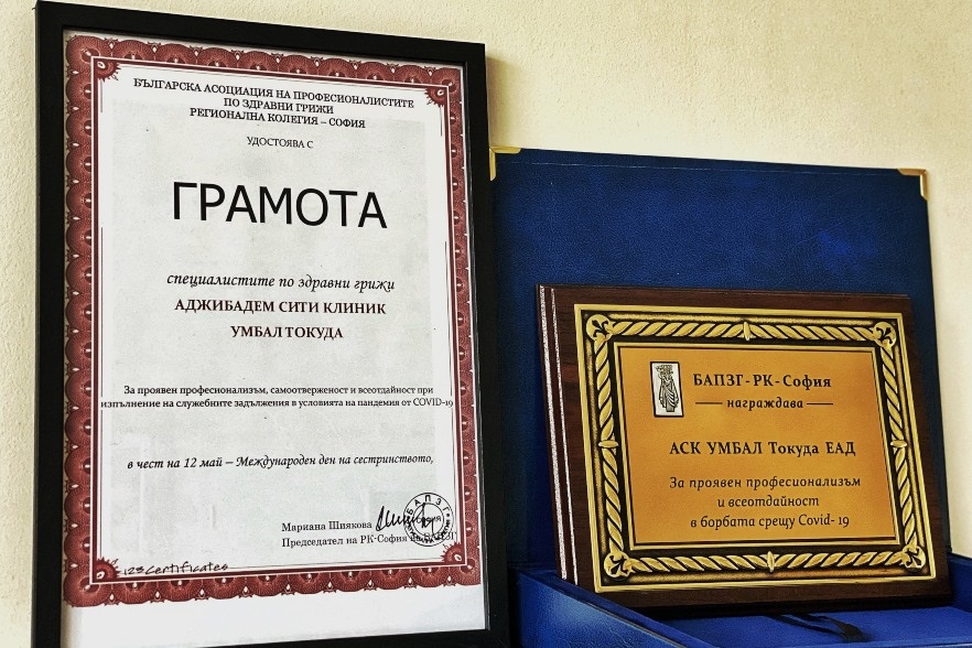 Признание за активното си участие, проявеният висок професионализъм и всеотдайност при преодоляването на пандемията от COVID-19 получи Аджибадем Сити Клиник УМБАЛ Токуда.