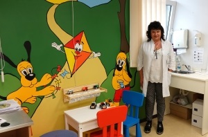 Новообособеният кабинет по детска дерматология бе изрисуван с шарени картини, по инициатива на доц. д-р Здравка Демерджиева, началник на Клиниката по дерматология и венерология.