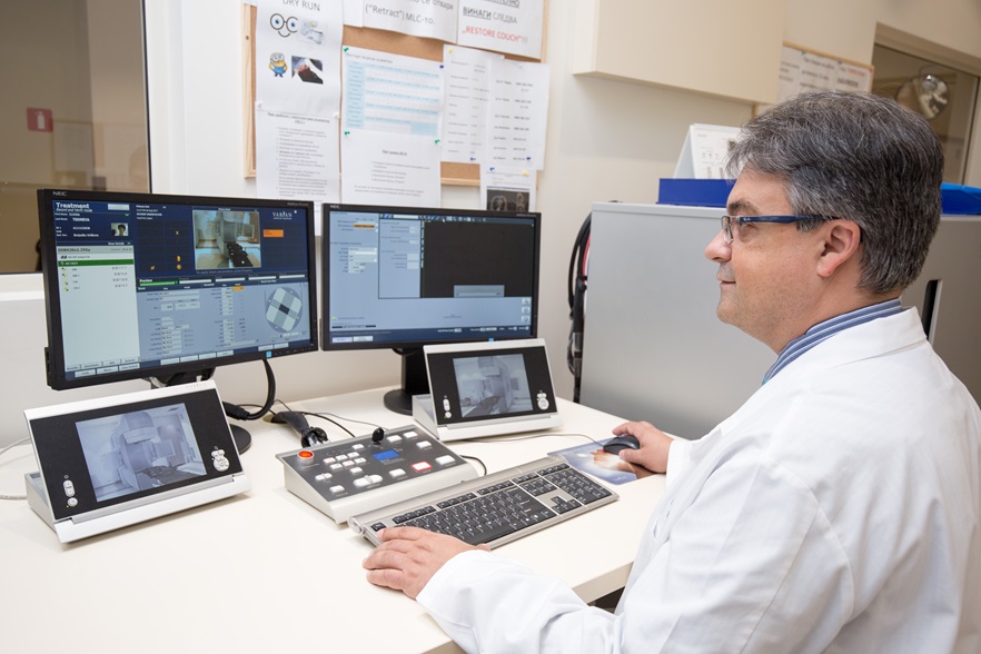 „Първият аспект, който прави лъчетерапията в наше време модерна е модулираната по интензитет лъчетерапия – IMRT. Докато с класическия тип рентгеновите лъчи вървят в права линия и дават доза по своя ход, с IMRT можем да съберем лъчи от няколко различни ъгъла и дозата, която даваме на тумора да го опише, а да намалим дозата в близките органи. Друг аспект на модерната лъчетерапия е IGRT – Image Guided Radio Therapy, която се води от образи. Пациентът може да лежи в различна позиция и туморът да се е изместил. IGRT позволява точно да се определи мястото на тумора преди да дадем фракция лъчетерапия. Това се прави рутинно преди всяка процедура в Аджибадем Сити Клиник Младост в София“, обяснява д-р Недев.