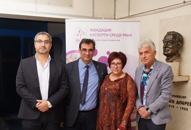 На снимката: /от ляво на дясно/: Д-р Вълкан Иванов, д-р Красимир Шопов, д-р Росица Кръстева, д-р Светлин Николов по време на кръглата маса, организирана от фондация "Експерти срещу рака".