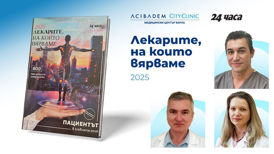 Трима лекари на Acibadem City Clinic Медицински център Варна са сред отличените в националната класация „Лекарите, на които вярваме“ за 2025 г. Той включва над 800 изявени медици от цялатат страна, които са спечелили уважението и доверието на пациентите. В класацията за тази година от нашия медицински център са отличени:
